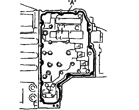 66. Coat two new gaskets with A/T fluid and place them as shown in figure at left.