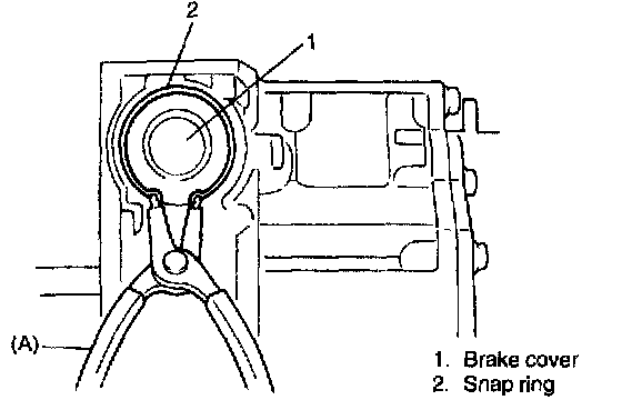 24. Install brake cover to transmission case with snap ring, using snap ring plies.