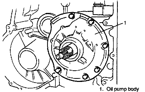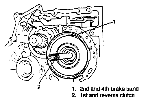 47. Remove oil pump body, 1st and reverse clutch and 2nd and 4th brake band from transmission case.