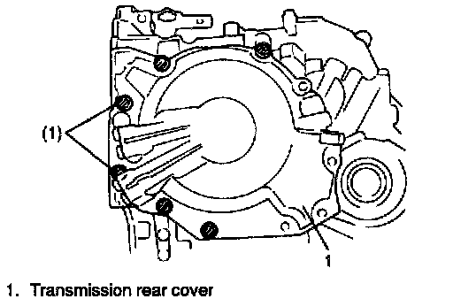 32. Lightly and uniformly tap two rib sections of transmission rear cover, using plastic hammer.
