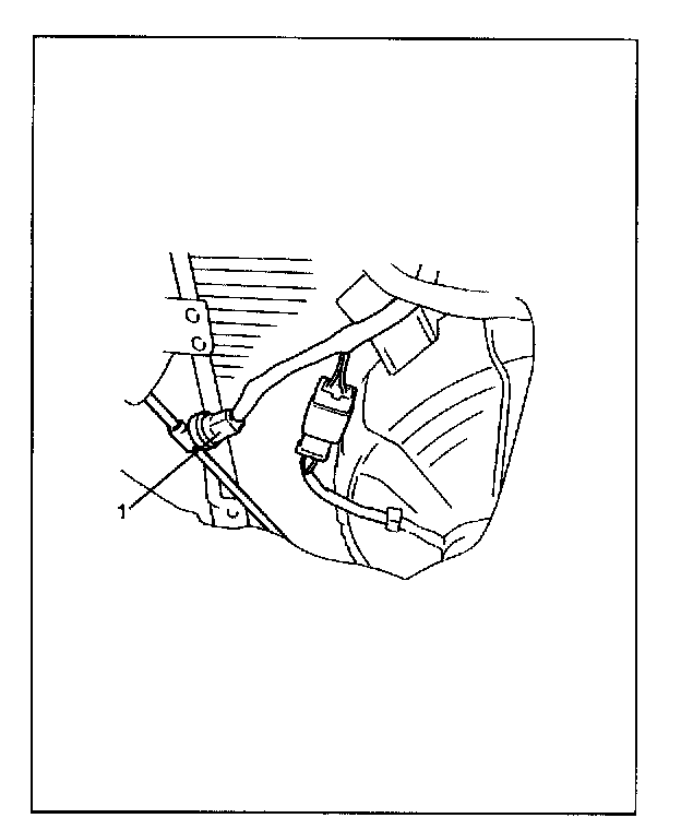 1. Check dual pressure switch (1) on liquid pipe for continuity at normal temperature (approx. 25 °C (77 °F)) when A/C system has a proper charge of refrigerant and when A/C system (compressor) is under operation. In each of these cases, switch should show proper continuity.