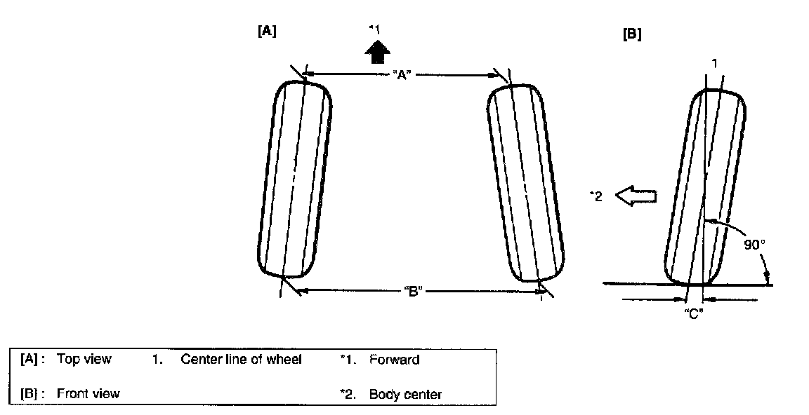 Toe is the turning in or out of the front wheels. The purpose of a toe specification is to ensure parallel rolling of the front wheels (Excessive toe-in or toe-out may increase tire wear).