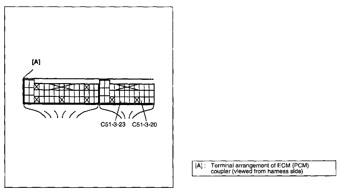 6. Turn ignition switch ON and check voltage between C51-3-23 and C51-3-20 terminal.