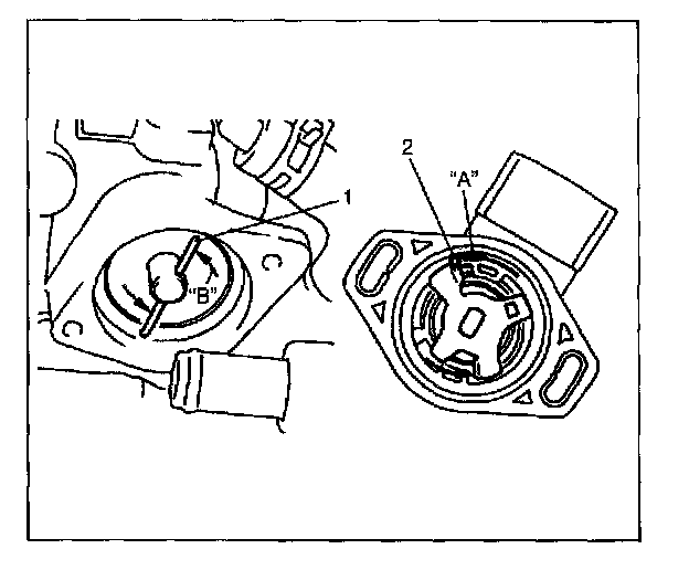 1. To install sensor place it onto throttle body so that sensor pickup lever (2) can engage with throttle body lever (1). "A" should engage with B".