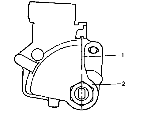 2. Check that center line on manual valve shaft (2) and "N" reference line (1) on switch are aligned. If not, loosen switch bolt and align them.