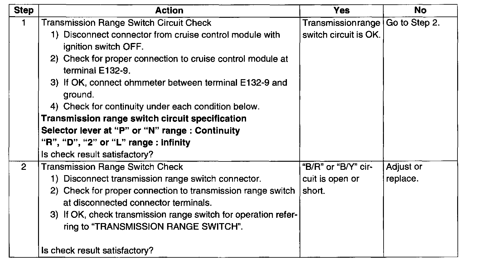 Transmission Range Switch Circuit Check (Step 1 - 2):