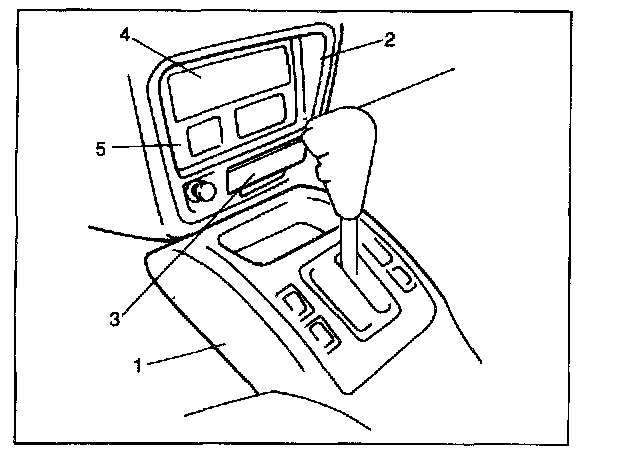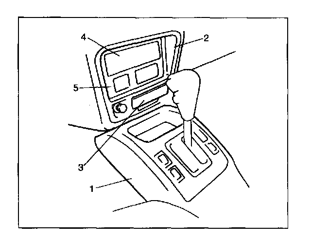 5. Remove ashtray (3) and tuner assembly, clock assembly (5), tuner pocket, radio hole cover (4), etc.