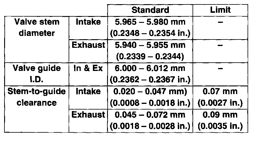 Valve stem-to-guide clearance: