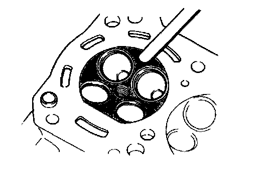 ^ Inspect each valve for wear, burn or distortion at its face and stem and, as necessary, replace it.