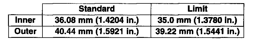 ^ Use a square and surface plate to check each spring for squareness in terms of clearance between end of valve spring and square. Valve springs found to exhibit a larger clearance than limit given below must be replaced.
