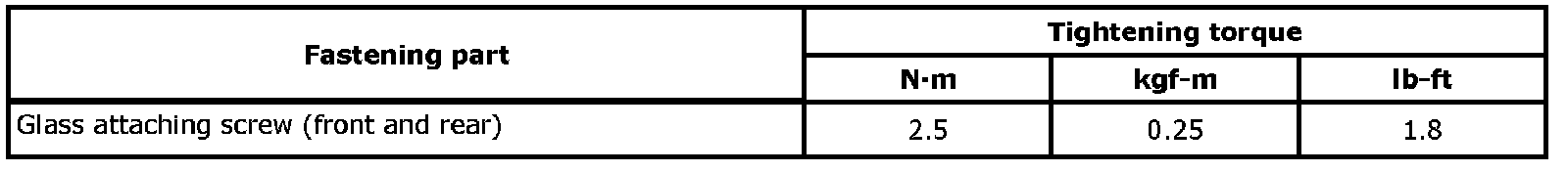 Tightening Torque Specifications: