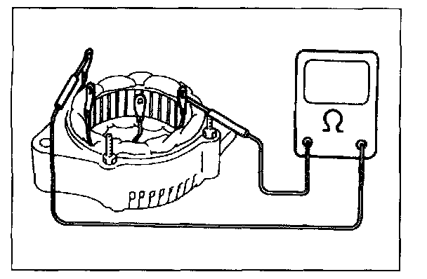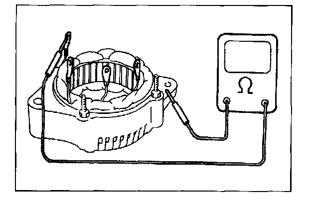 Using ohmmeter, check that there is no continuity between coil leads and stator core. If there is continuity, replace stator.
