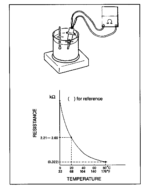 INTAKE AIR TEMPERATURE SENSOR (IAT SENSOR)Immerse temperature sensing part of IAT sensor in water (or ice) and measure resistance between sensor terminals while heating water gradually.