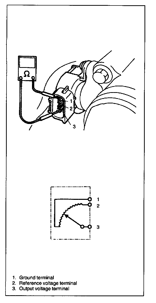 1. Disconnect negative cable at battery and coupler from TP sensor.