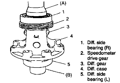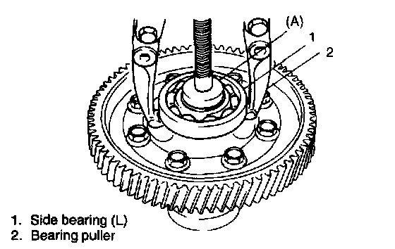 1. Remove diff. side bearing (L). Use special tool and puller for its removal.