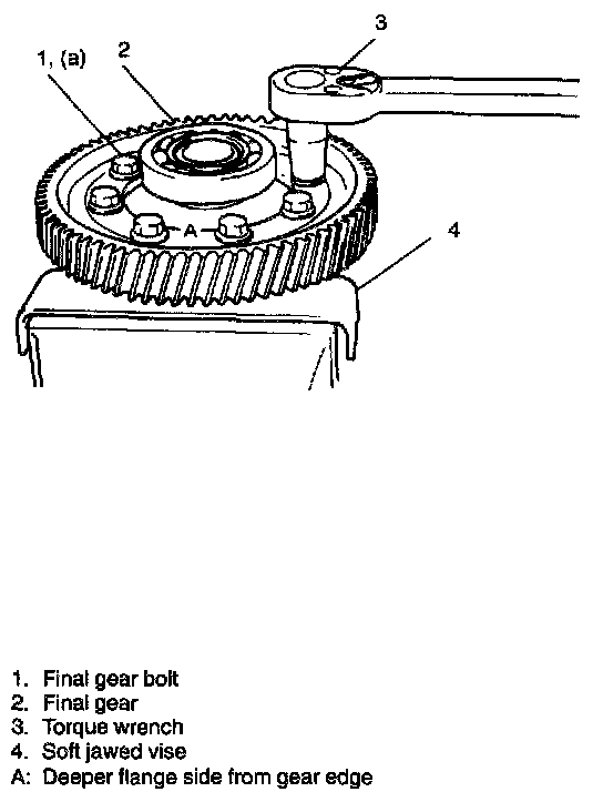 6. Hold differential assembly with soft jawed vise, install final gear and then tighten it with 8 bolts to specified torque.