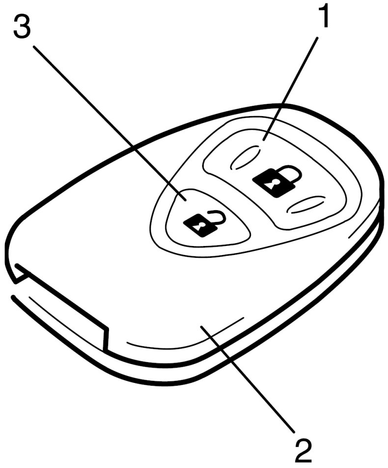 a. When pushing "lock" button (1) on transmitter (2) once, check all doors lock and hazard waning lights flash once.
