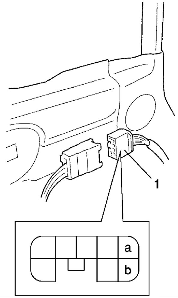 3. Check for continuity between terminals "a" and "b". If no continuity, replace outside mirror.