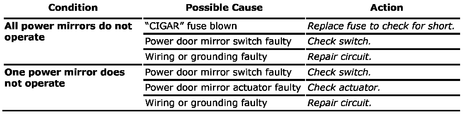 Power Door Mirror Control System (If Equipped) Symptom Diagnosis