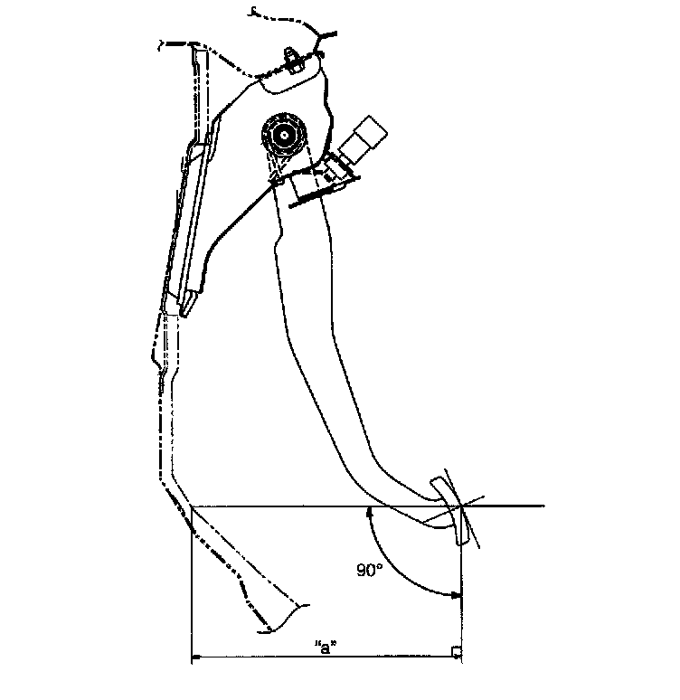 Brake pedal free height "a" from dash silencer 222 - 242 mm (8.74 - 9.53 inch)