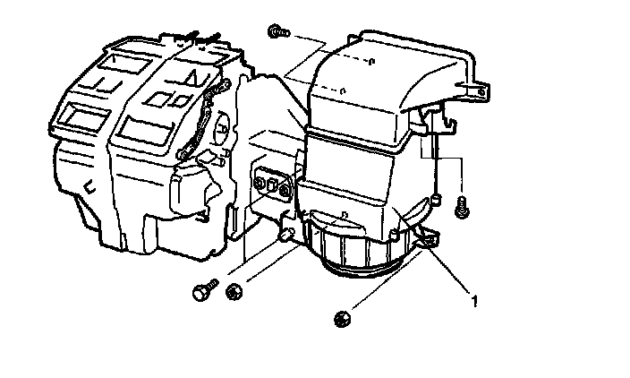 4. Disconnect main harness connector clamp (1), air inlet actuator connector (2) and blower connector (3).