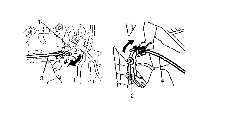 4. Disconnect air flow selector cable (1) and temperature selector cable (2).