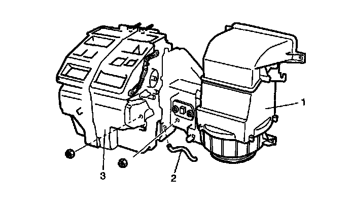 2. Drain engine coolant, and disconnect heater hoses (1) from heater unit.