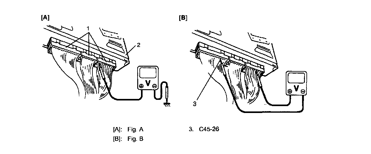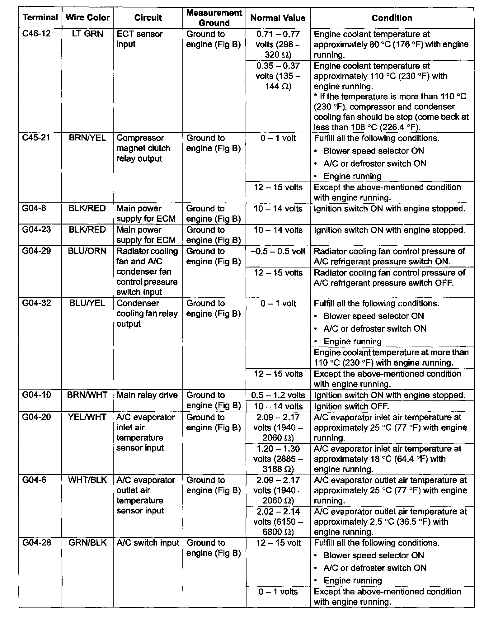 NOTE: As each terminal voltage is affected by the battery voltage, confirm that the battery voltage is 11 V or more when ignition switch is ON position.