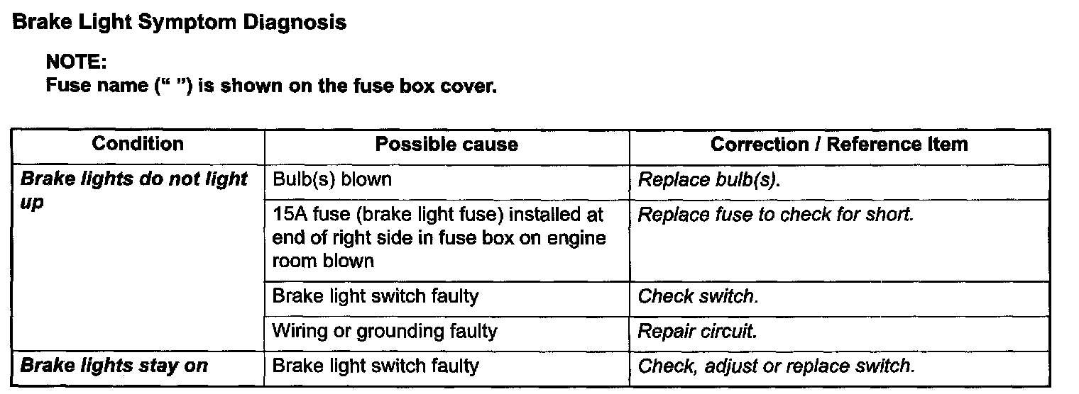 Brake Lamp: Testing and Inspection