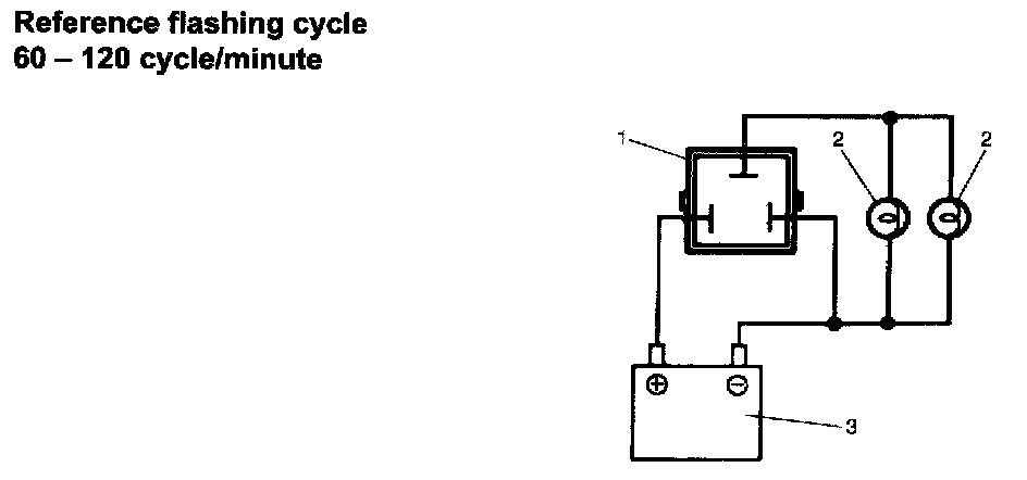 Connect turn signal and hazard relay (1), battery (3) and two test bulbs