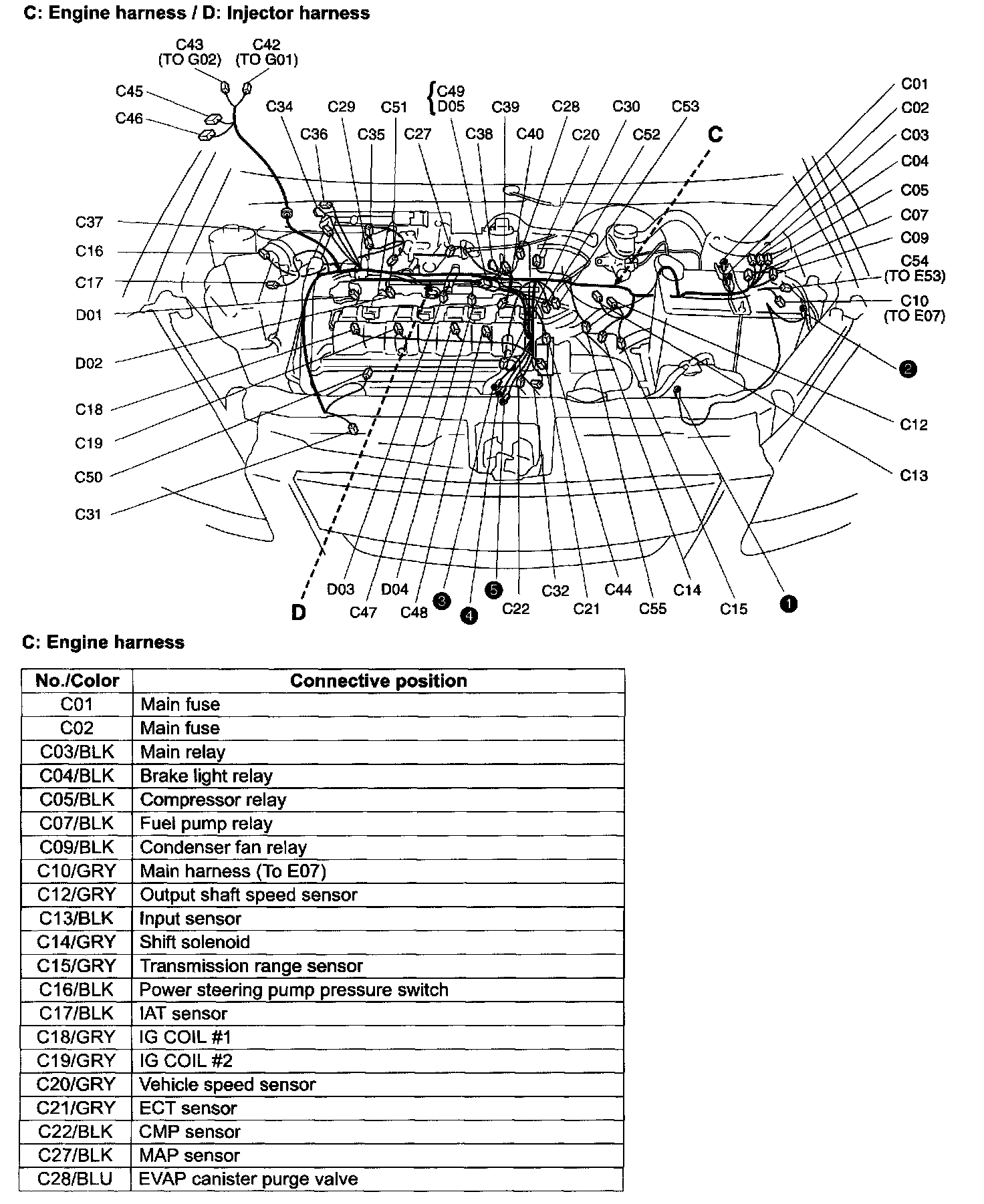 C: Engine Harness / D: Injector Harness - Connective Position: