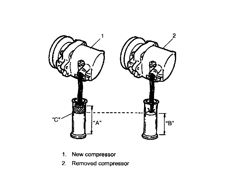 Compressor oil is sealed in each new compressor by the amount required for A/C system. Therefore, when using a new compressor for replacement, drain excess oil from it by the amount calculated as follows.
