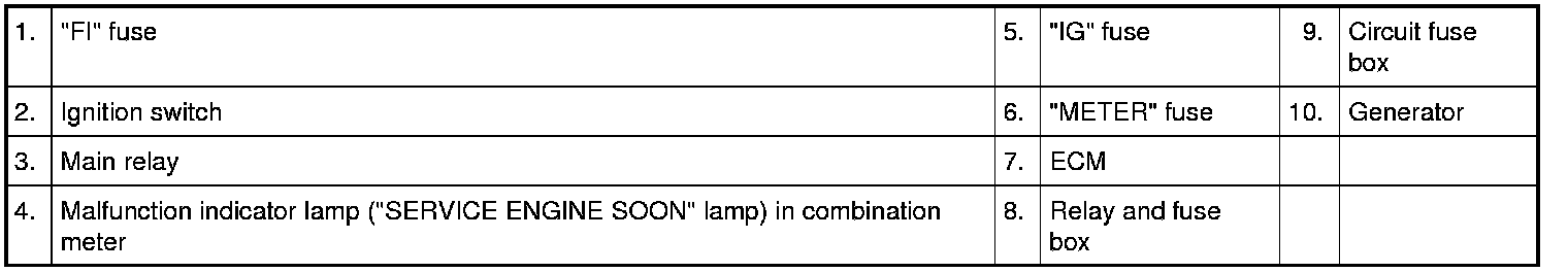 "BLK/WHT", "BLK/YEL" or "BRN/WHT" circuit open.