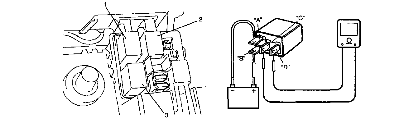 3. Check that there is no continuity between terminal "C" and "B". If there is continuity, replace relay.