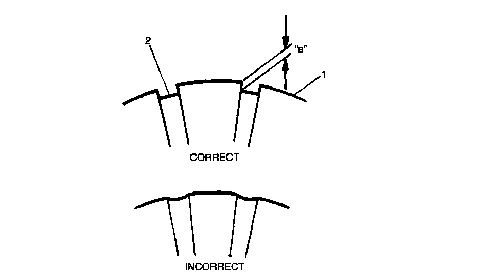 - Inspect the commutator (1) for insulator (2) depth. Correct or replace if below limit.