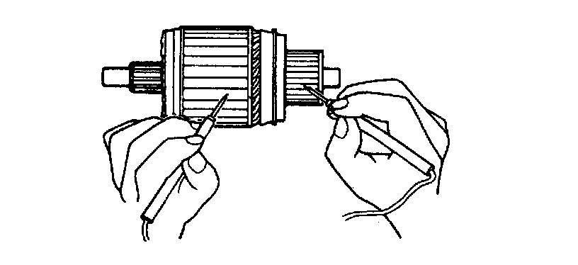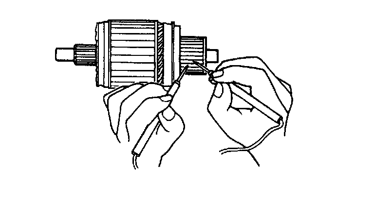 - Check the commutator and armature core. If there is continuity, the armature is grounded and must be replaced.