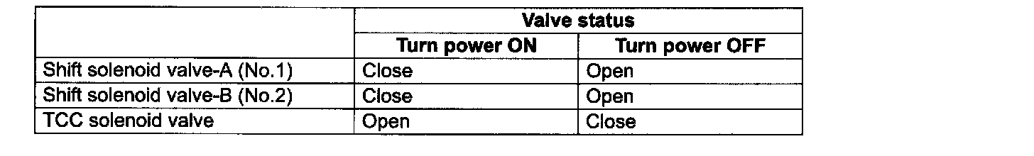 Operation of Shift Solenoid Valves and TCC Solenoid Valve