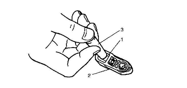 4. Push cable end holder (1) out from eye-end (2) using an appropriate tool (3) to disengage cable.