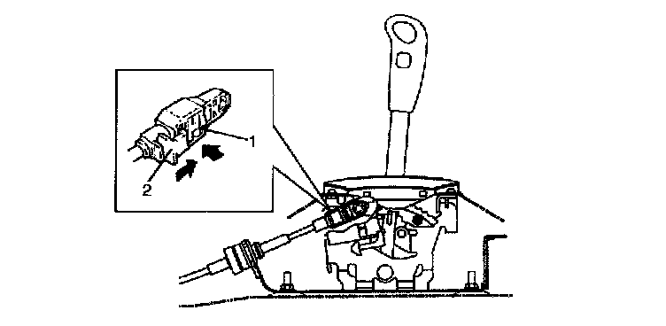 7. With both selector lever and transmission range sensor kept each "N" position, drive cable end holder (1) in until it locks cable.