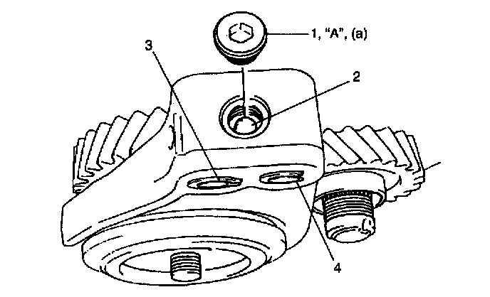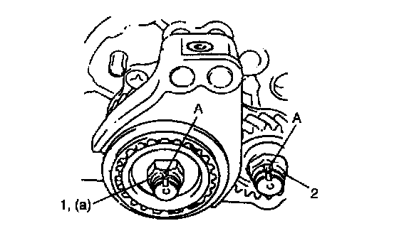 15. Caulk input shaft nut (1) and countershaft nut (2) with caulking tool (A).