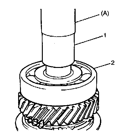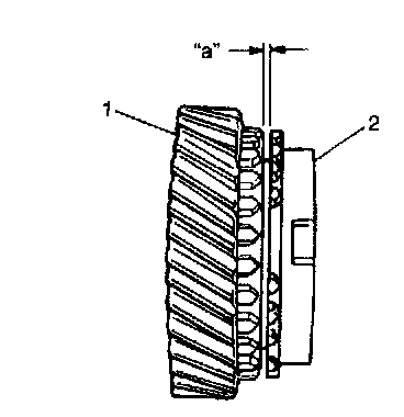 2. If synchronizer parts need to be repaired, check clearance "a" between ring (2) and gear (1), each chamfered tooth of gear, ring and sleeve, then determine parts replacement.