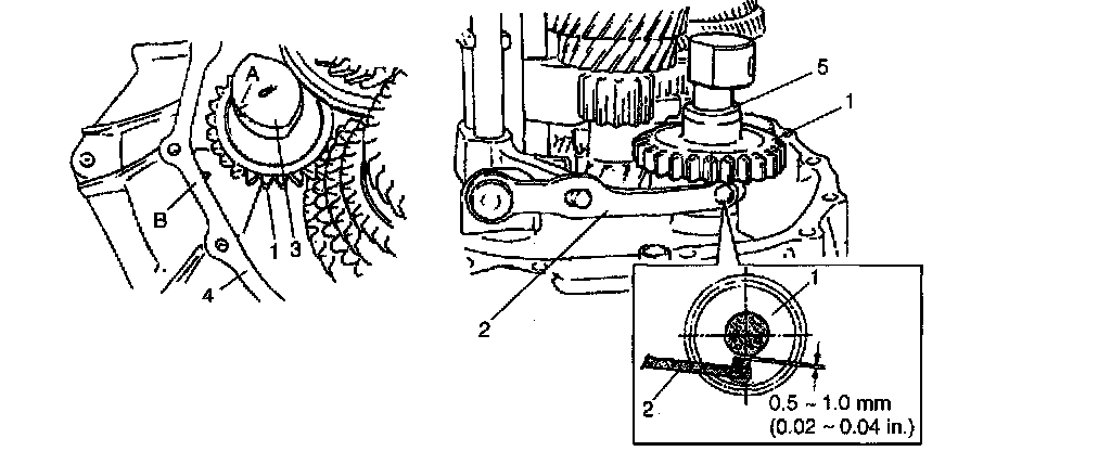 ^ Confirm that reverse gear shift lever end has clearance 1 mm (0.04 inch) to idler gear groove.