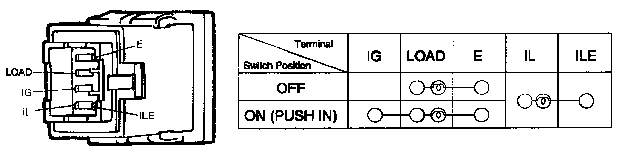 Check for continuity between terminals at each switch position as shown in the figure. If check result is not satisfied, replace.