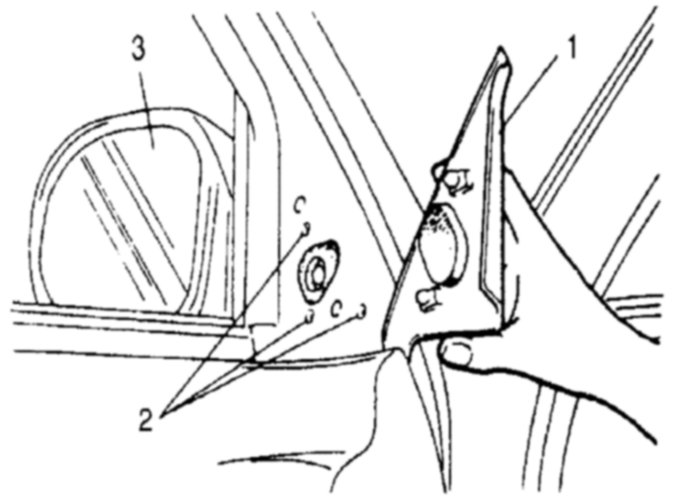 2. Remove door mirror (3) from door by disconnecting coupler.