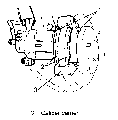 NOTE: When pads are removed, visually inspect caliper for brake fluid leak. Correct leaky point, if any.