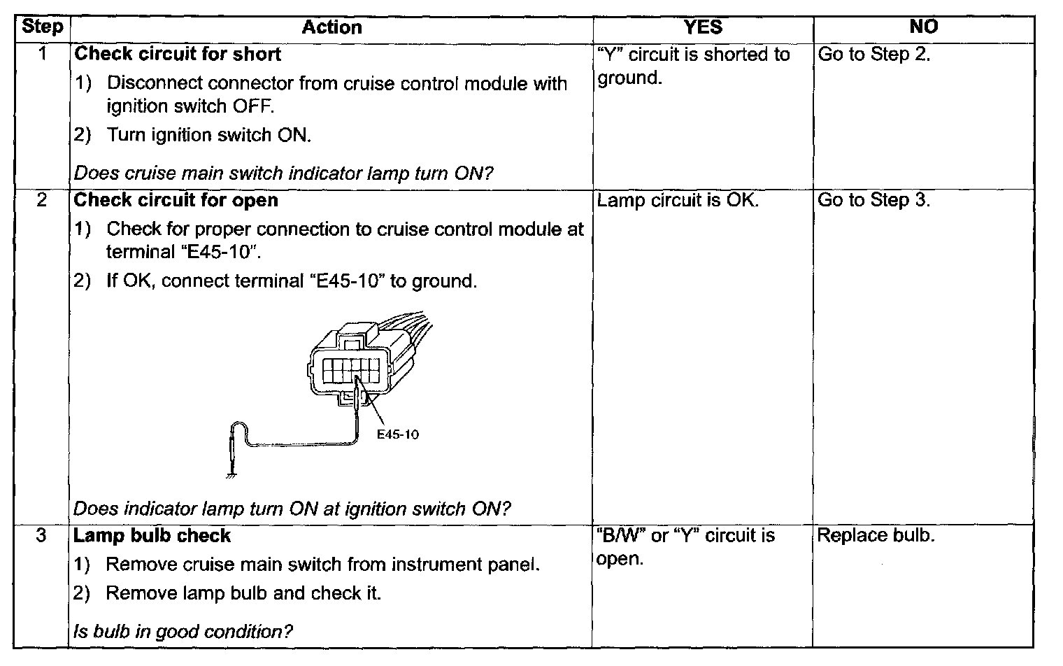 Cruise Main Switch Indicator Lamp Circuit Check