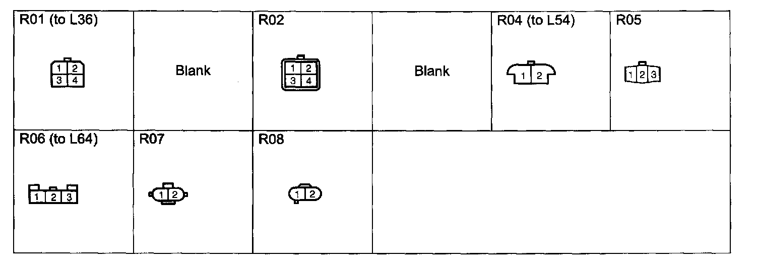 NOTE: The illustrations below show the harness side connectors, but not the component side connectors.NOTE:
