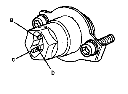 2. Check that there is no continuity between terminal "a" and "b" or "c" and "b". If there is continuity, replace engine block heater.