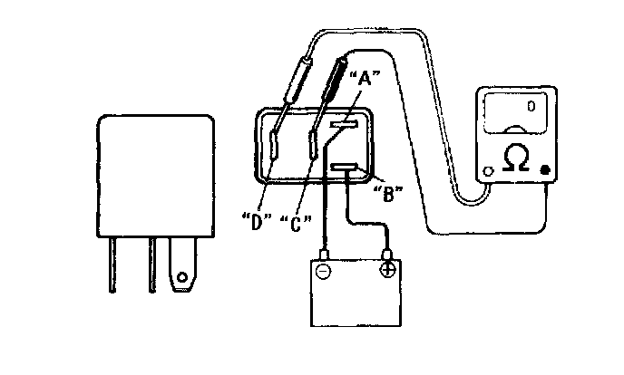 4. Check whether proper continuity is obtained between terminals "C" and "D". If found defective with no continuity, replace relay.