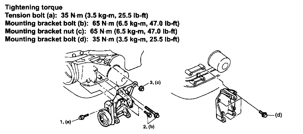 Check mounting bracket for crack or fracture. Retighten bolts by the following sequence as indicated in figure.